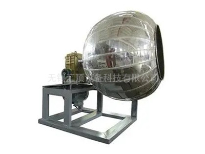 為使芯片盡快在其表面均勻涂上包衣結晶,并達到拋光目的,須先對鍋內芯片分次噴糖漿,再通過鍋體順時針旋轉,使糖衣片在鍋內翻滾、磨擦、研磨,使糖衣均勻。同時向鍋內通入熱風,迅速除去藥片糖衣表層水份,獲得包裹均勻、光滑的糖衣片。本機是糖衣工藝的常用設備,以穩定的鍋體線速度旋轉,使藥片在鍋內形成拋物曲線,達到糖衣層厚薄均勻,色澤光亮,不發生麻點的工藝要求。