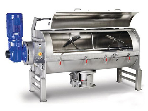 混合機啟動后犁刀由犁刀軸帶動旋轉,使物料沿筒體徑向作周向湍動,同時把物料沿犁刀兩側面的法線方向拋出。當被拋出和作周向湍動的物料流經飛刀組是時,被高速旋轉的刀飛迅速、有力地拋散。物料在上述犁刀和飛刀的復合作用下,不斷擴散、在短時間內達到均勻混合,混合精度高。